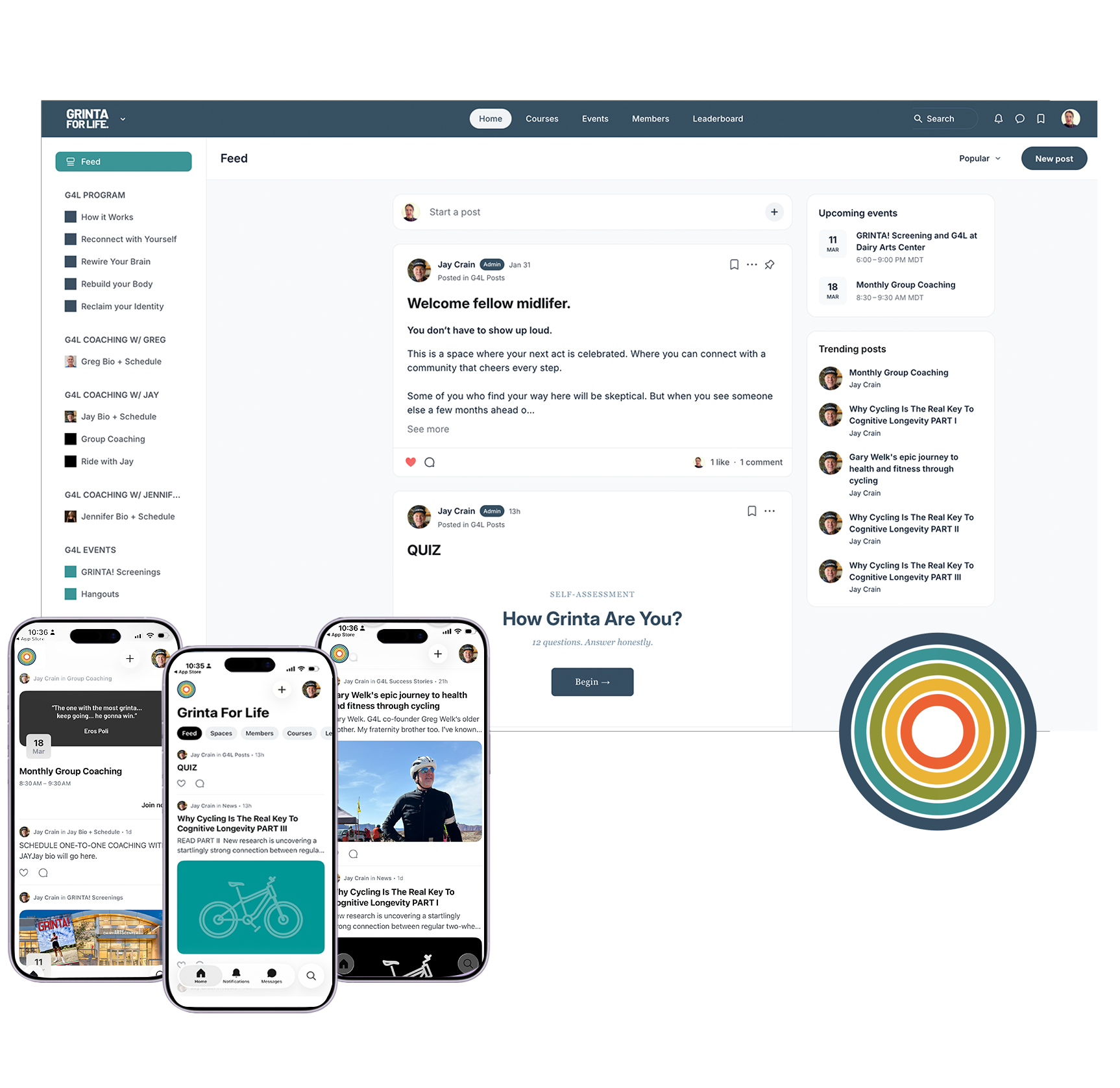 A self-managed program geared for midlifers that allows you to take control of your own wellness. Grinta for Life helps you learn and make the changes to day-to-day habits to achieve holistic wellness, and feel better all the time.